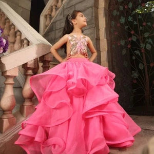 Peach 3D Flower Party Frock