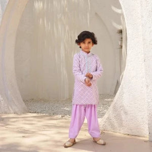 Purple Bandhej Kurta Set