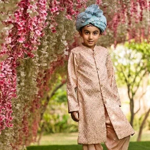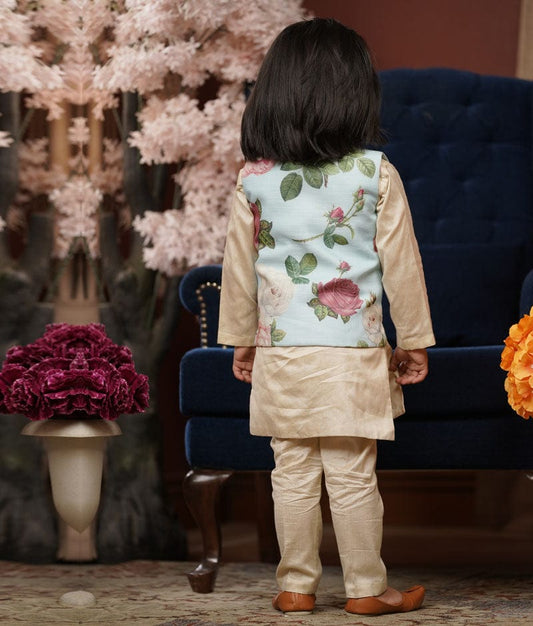 Light Fawn Kurta & Pant Set with Blue Flora...