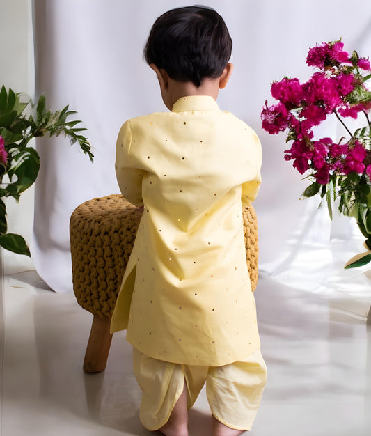 Yellow Faux Mukaish Work Kurta with Dhoti for Boys