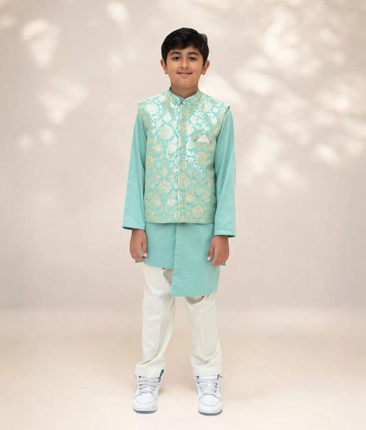 Our party wear collection for baby boys is thoughtfully designed with premium fabrics, intricate detailing, and trendy designs that add a royal touch to every look. From classic waistcoat sets to modern blazers and traditional ethnic outfits, we have everything you need to dress your baby boy like a true star.
