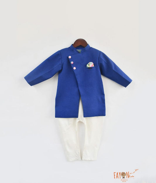 Aqua Blue Linen Achkan with Patch Chudidar for ...