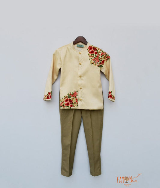 Ivory Embroidery Bandgala with Beige Pant for Boys