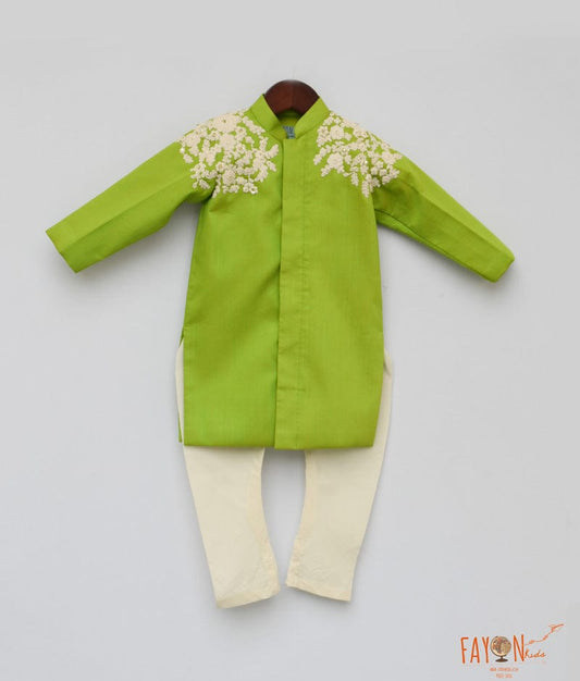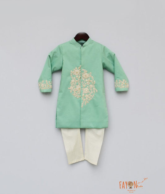 Sea Green Embroidery Achkan with Chudidar for Boys