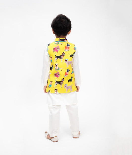 Yellow Tie and Die Nehru Jacket Jamna Set for Boys