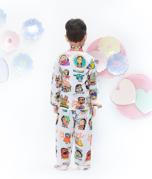 White Funky Print Shirt with Pajama for Boys
