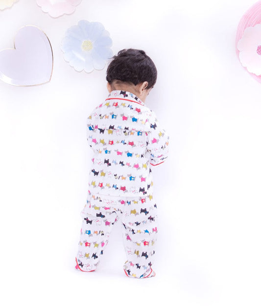 White Puppy Printed Shirt with Pajama for Boys