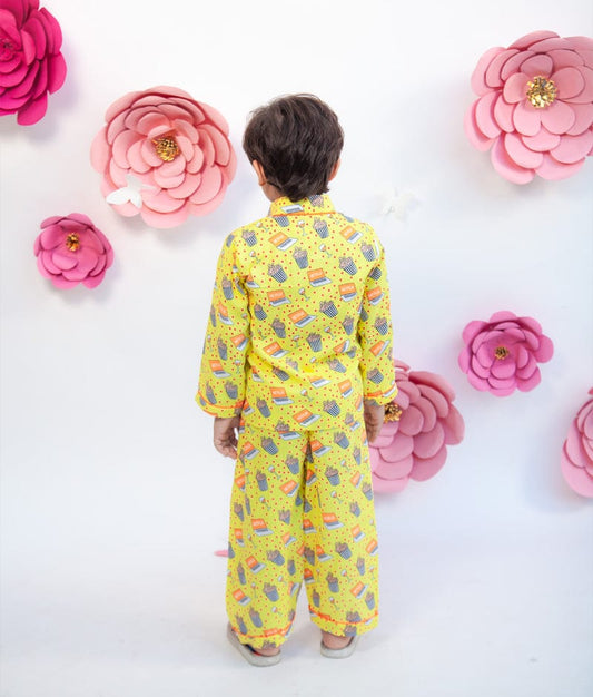 Yellow Printed Shirt with Pajama for Boys