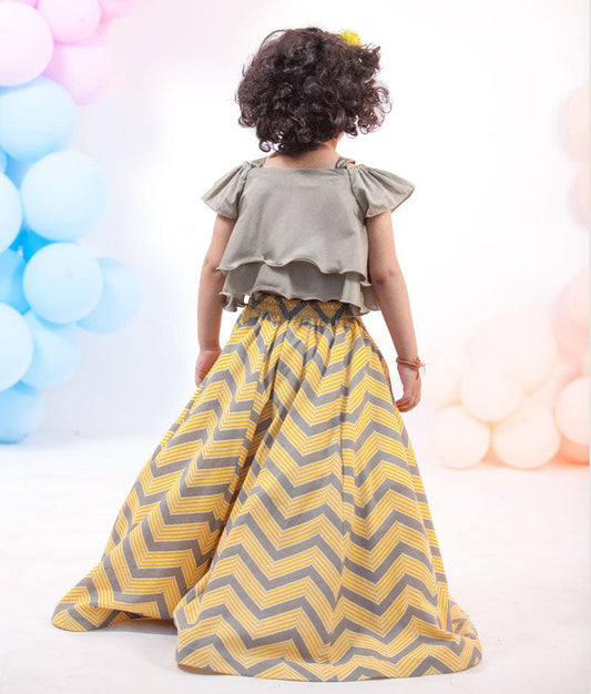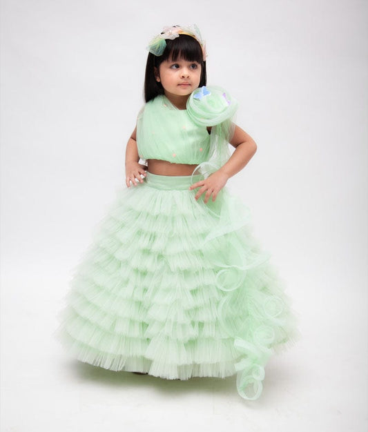 Yellow Net Green Net Embroidery Lehenga with Ch...