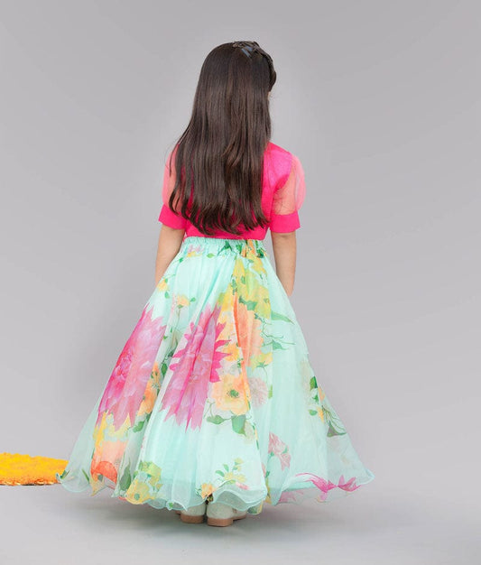 Neon Pink Acqua Printed Lehenga with Knotted To...