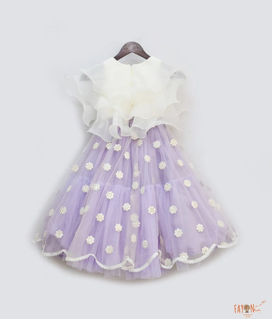 Off white Organza Lilac Mirror Boti Lehenga wit...