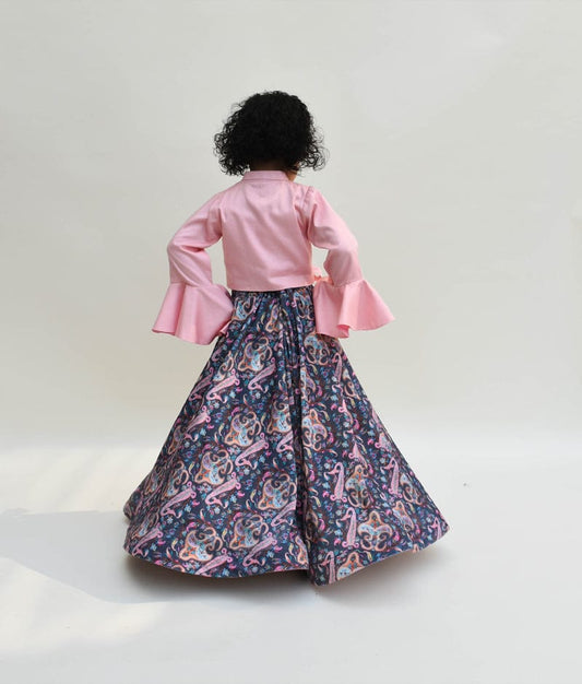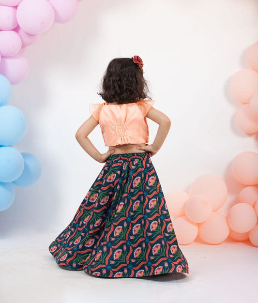 Peach Printed Lehenga with Tie Knotted Top for ...