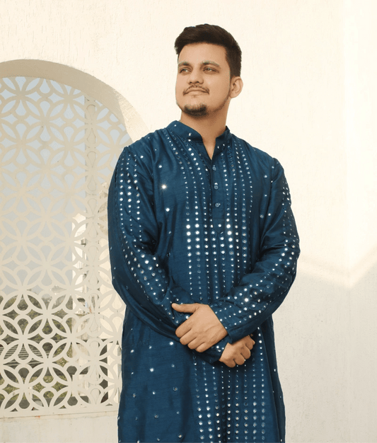 Festive Celebrations: For festivals like Diwali, Navratri, or Eid, a vibrant dhoti shirt set is the perfect choice. Opt for bold colours like red, yellow, or green, and pair the outfit with traditional accessories for a complete festive look.