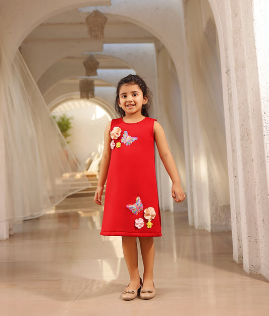 Playful Red Neoprene Dress with Sweet Summer Mo...