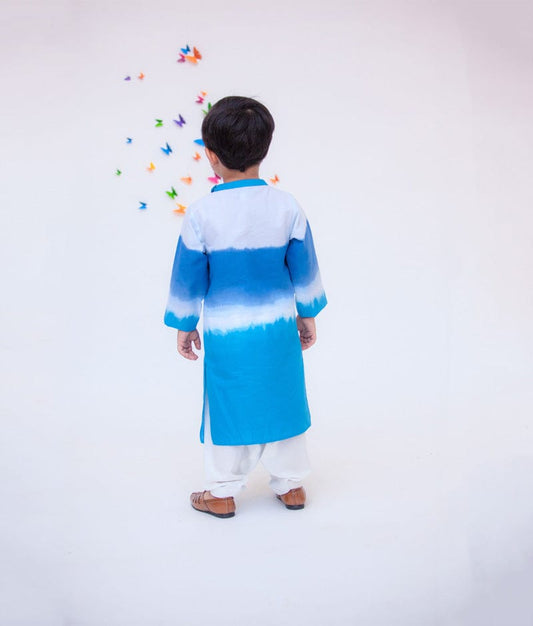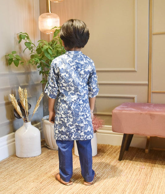 Blue Cotton Print Kurta and Blue Pant for Boys