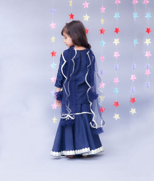 Dark Blue Mirror Work Dark Blue Silk Sharara wi...