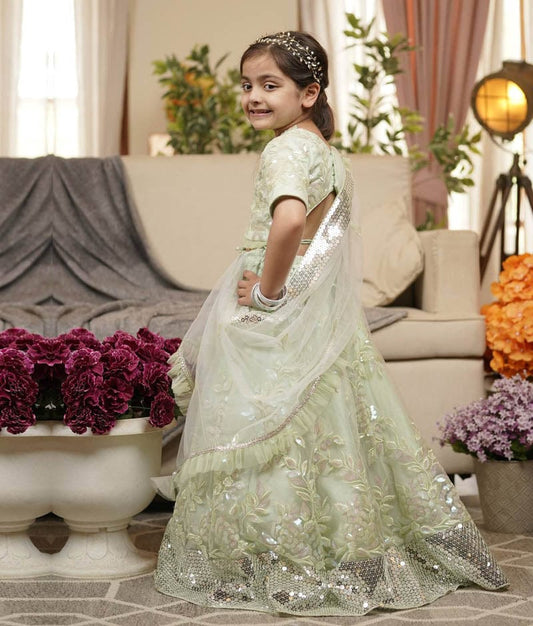 Green Sequins Embroidery Lehenga Choli and Dupa...