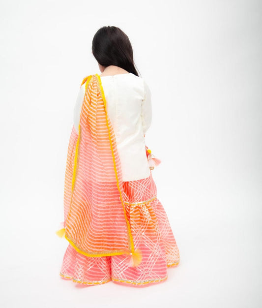 Off white Cotton Silk Pink Kotta Print Sharara ...