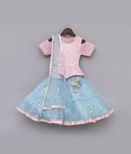 Baby Pink Embroidery Blue Boti Net Anarkali wit...