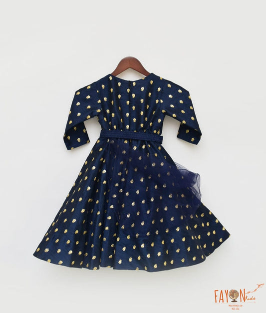 Dark Blue Booti Silk Embroidery Anarkali with N...