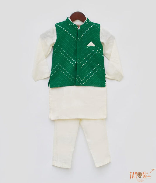 Green Embroidery Nehru Jacket Off White Kurta P...