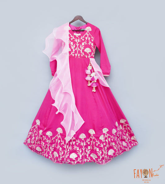 Hot Pink Gota Anarkali with Organza Dupatta for...