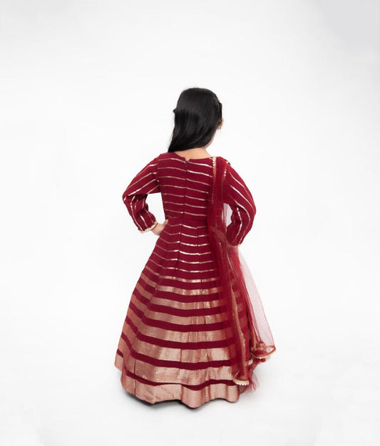 Maroon Boti Velvet Anarkali with Net Dupatta fo...