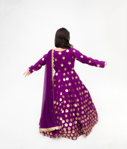 Purple Georgette Sequins Flowers Embroidery Ana...