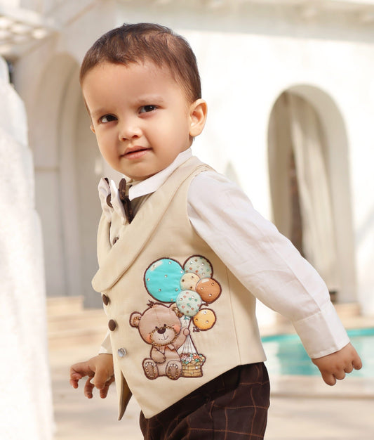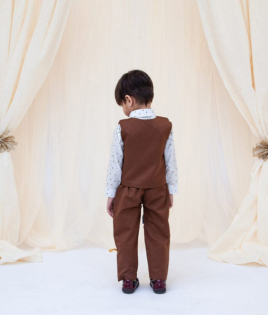 Brown Animals Motifs Waist Coat with Shirt Brow...