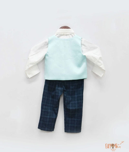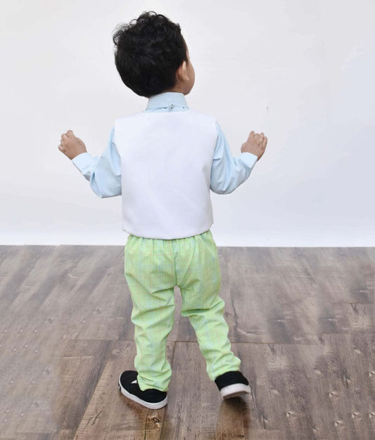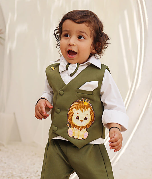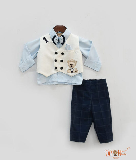 Blue Lion Motif Waist Coat with Off white Shirt...