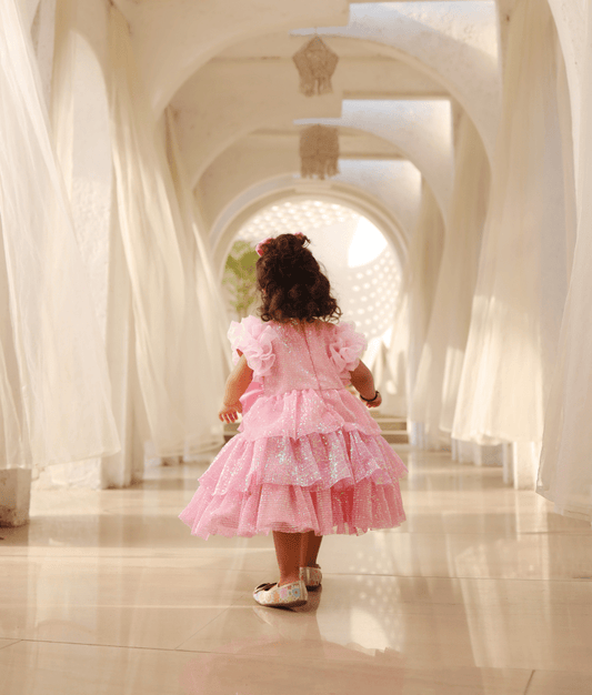 Make your princess the center of attention at every celebration. Our shimmering net frocks, like the Glimmering Pink Frock or Sequins Lilac Dress, bring just the right amount of sparkle and sophistication.