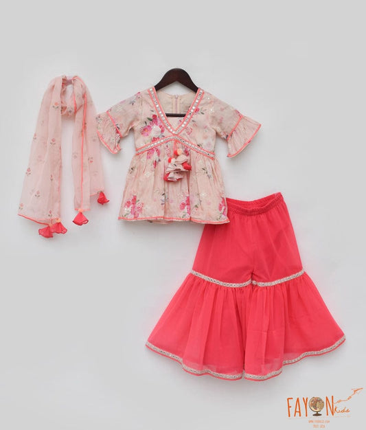 Pink Printed Kurti Sharara Dupatta for Girls
