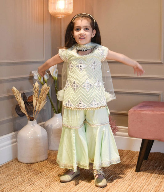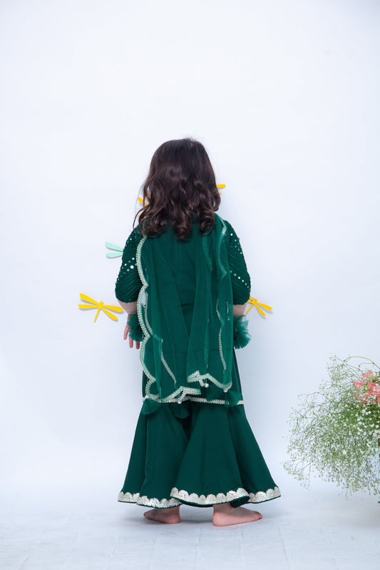 Green Gotta Embroidery Kurti Sharara for Girls