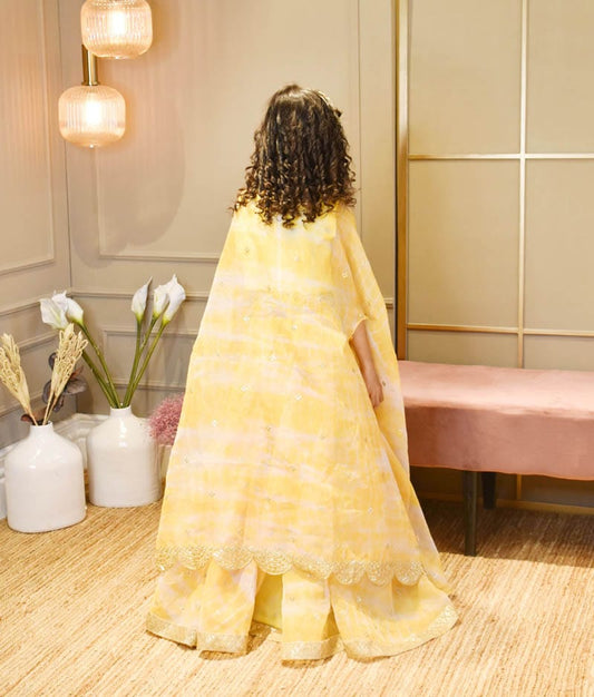 Yellow Printed Organza Sharara Top