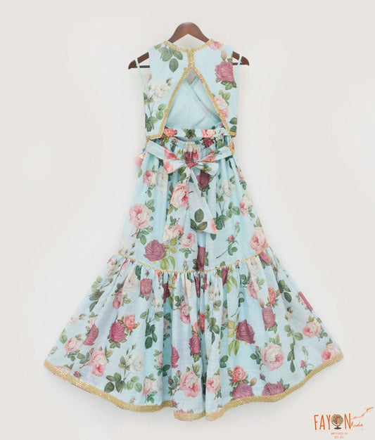 Teal Blue Crop Top Set – Indo-western flair meets traditional silhouettes—perfect for modern teens.