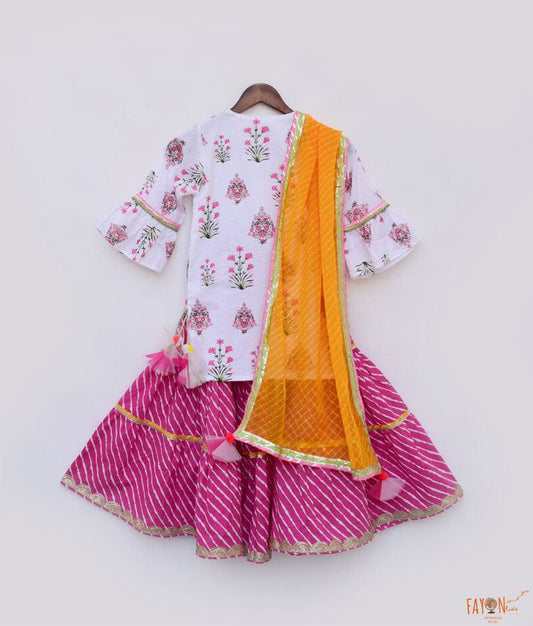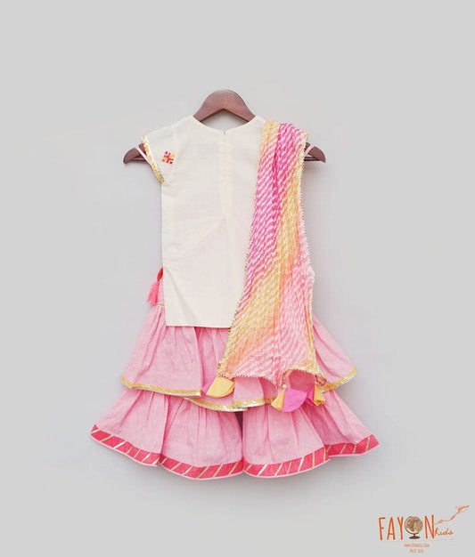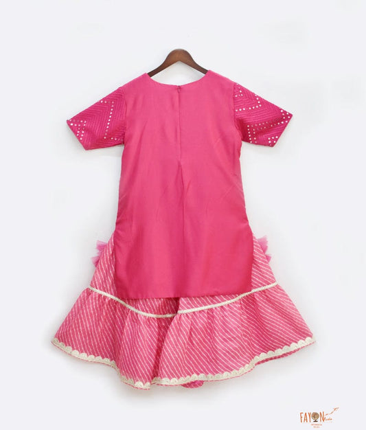 Pink Mirror Work Pink Lehriya Sharara with Kurt...