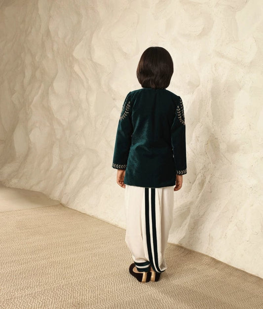 Embroidered Emerald Green Bandgala with Dhoti