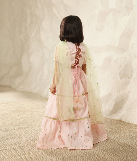 Pink Faux Mukaish work Top and Skirt
