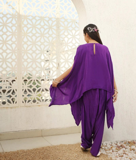 Purple Crepe Kurti & Dhoti Set
