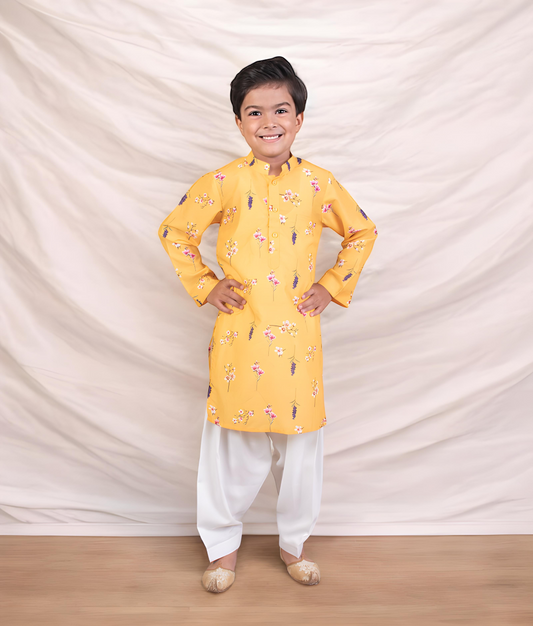 Yellow Printed Kurta with Salwar