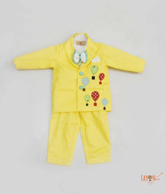 Yellow Ballons Motif Coat with White Shirt Pant...