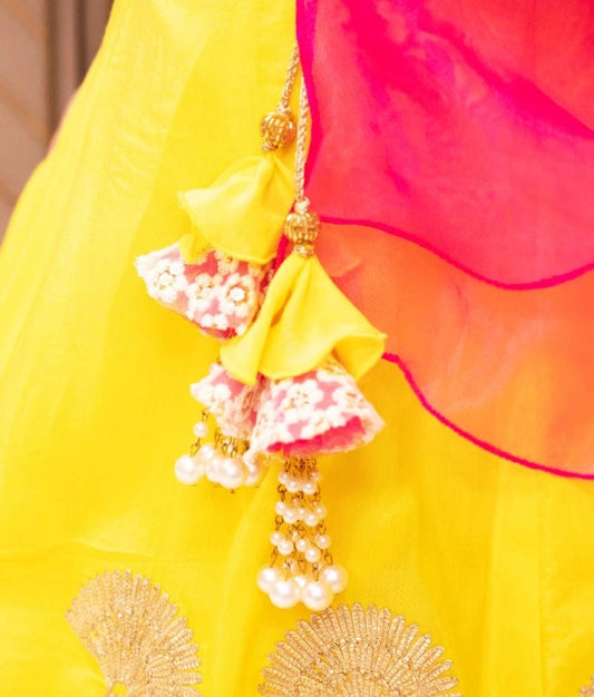 This Lehenga set is a testament to traditional artistry. The mirror work and vibrant colours make it an excellent choice for young girls looking to shine at any event.