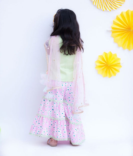 Pista Green Cotton Silk Pink Printed Sharara wi...