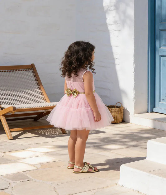 Glimmering Pink Frock: A charming frock with sequined details and a layered tulle skirt. This dress is perfect for a fairytale look, making your baby girl the center of attention.