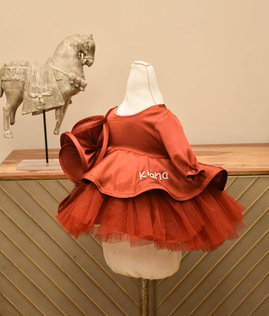 Maroon Net Flower Frock for Girls