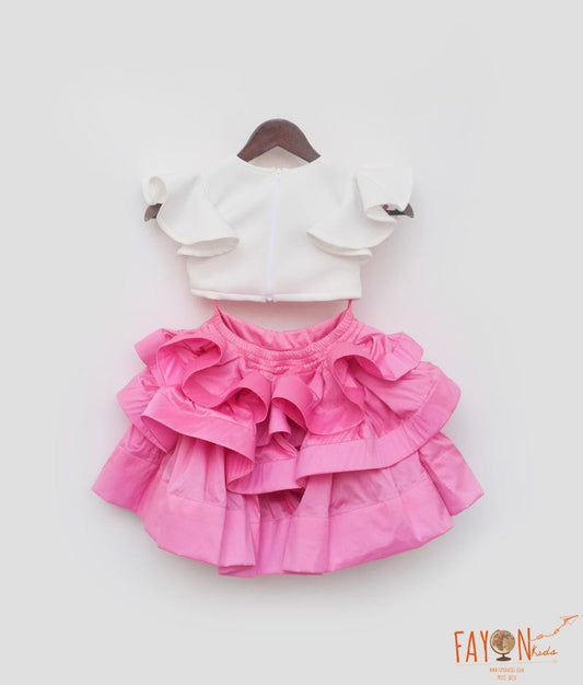 Off white Lycra Top and Pink Silk Skirt for Girls