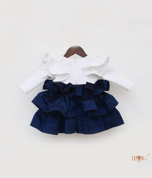 Off white Neoprene Dark Blue Silk Frock for Girls
