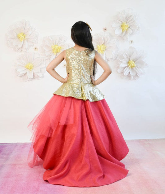 Coral Sequins Net Gown for Girls
