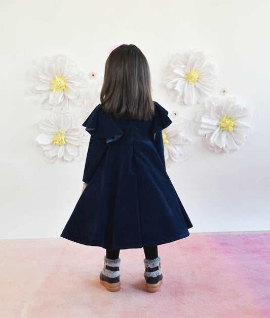 Dark Blue Velvet Dress with 3D Flowers for Girls