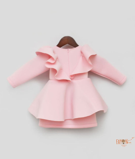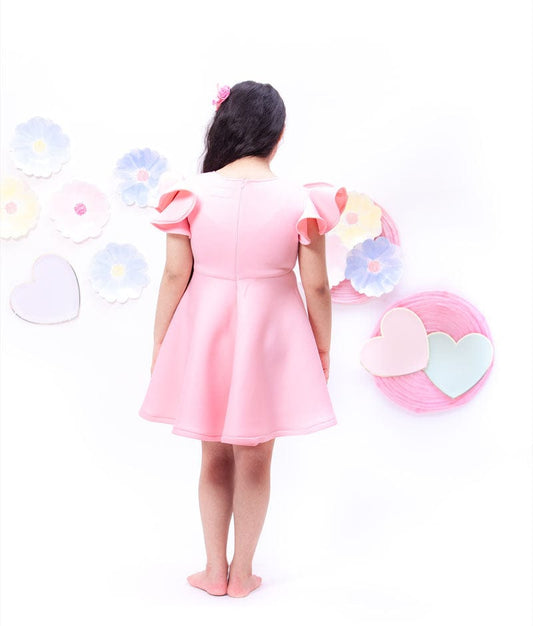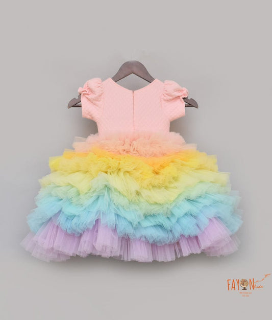 Baby Pink Quilted Lycra Frock with Multi Colour...